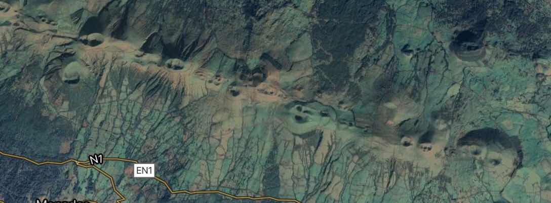 Sao Jorge has over 200 volcanoes. This Google Maps photo shows how the spine of the island, which is long and slender, comprises a line of volcanic craters.